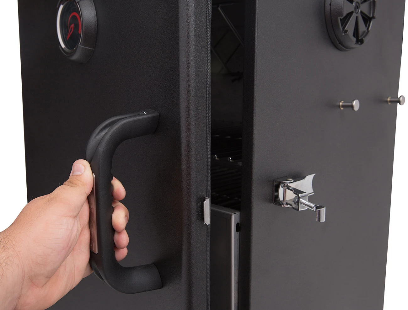 Mit seinen vier Grillrosten bietet der Smoker sagenhafte 4970 cm² Grillfläche. Der massive Holzkohlebehälter sorgt stets für genügend Hitze zur Raucherzeugung und zum Garen Ihres Grillguts. Dank doppelwandiger Stahlkonstruktion werden Hitze und Rauch effizient im Inneren des Gerätes gespeichert. Mit Hilfe der beiden stufenlos regulierbaren Zu- und Abluftregulierungen und des in der Fronttür integrierten Thermometers haben Sie die Temperatur im Inneren fest im Griff.