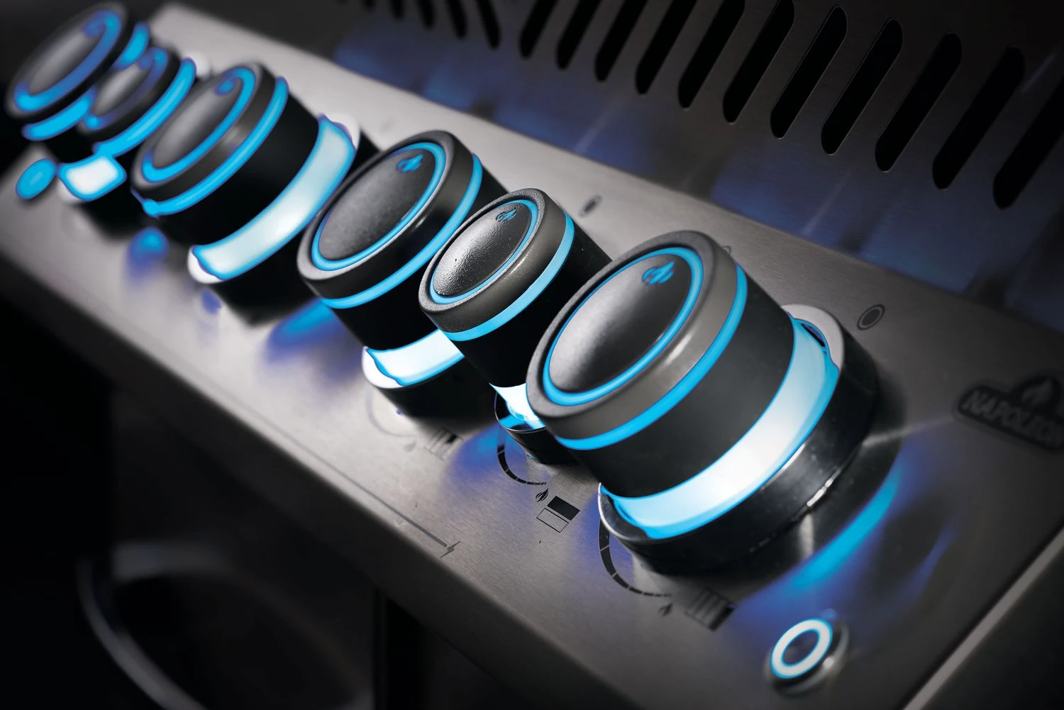 Der Napoleon Prestige 500 in Schwarz mit Safety Glow Drehreglern