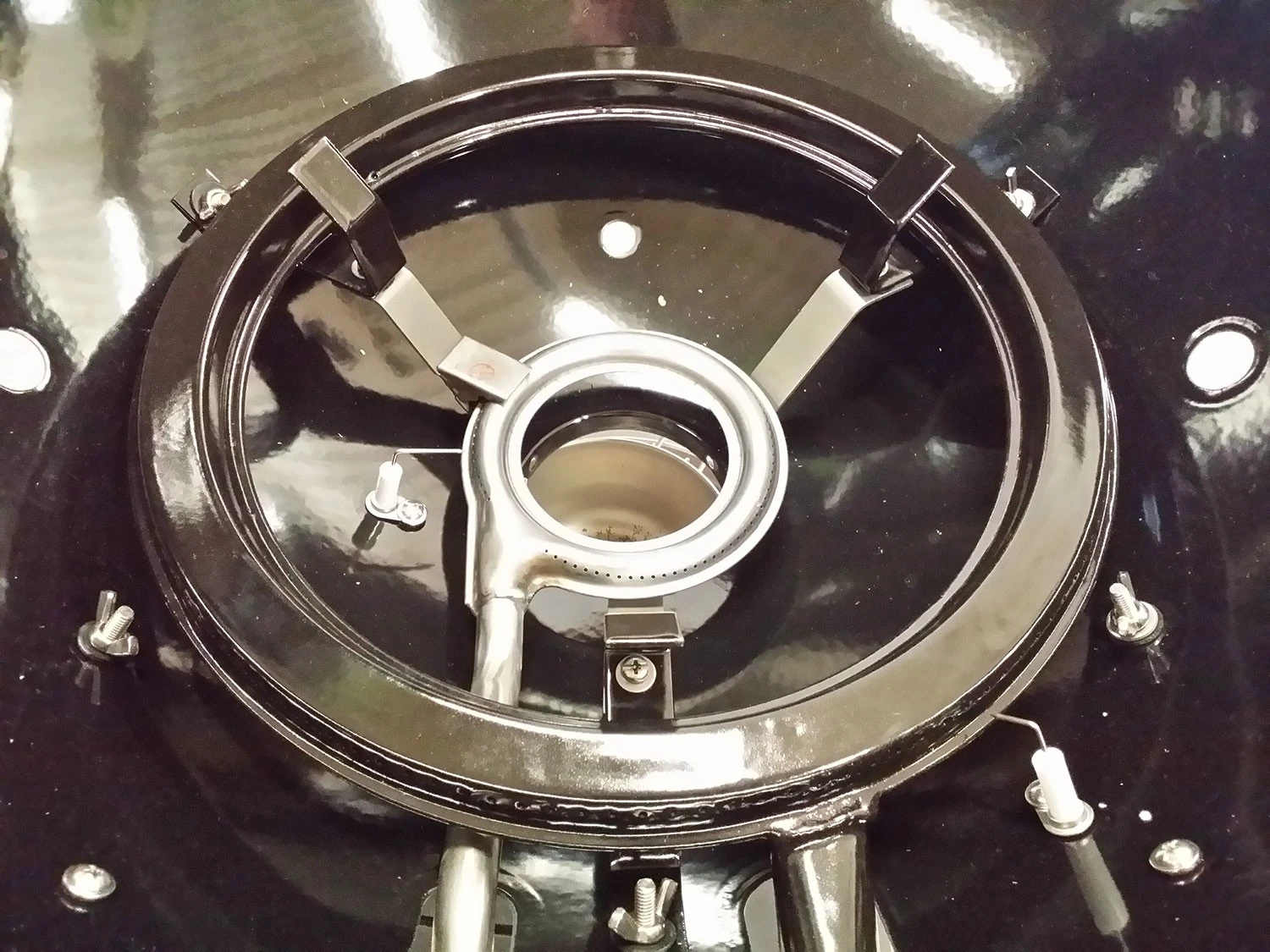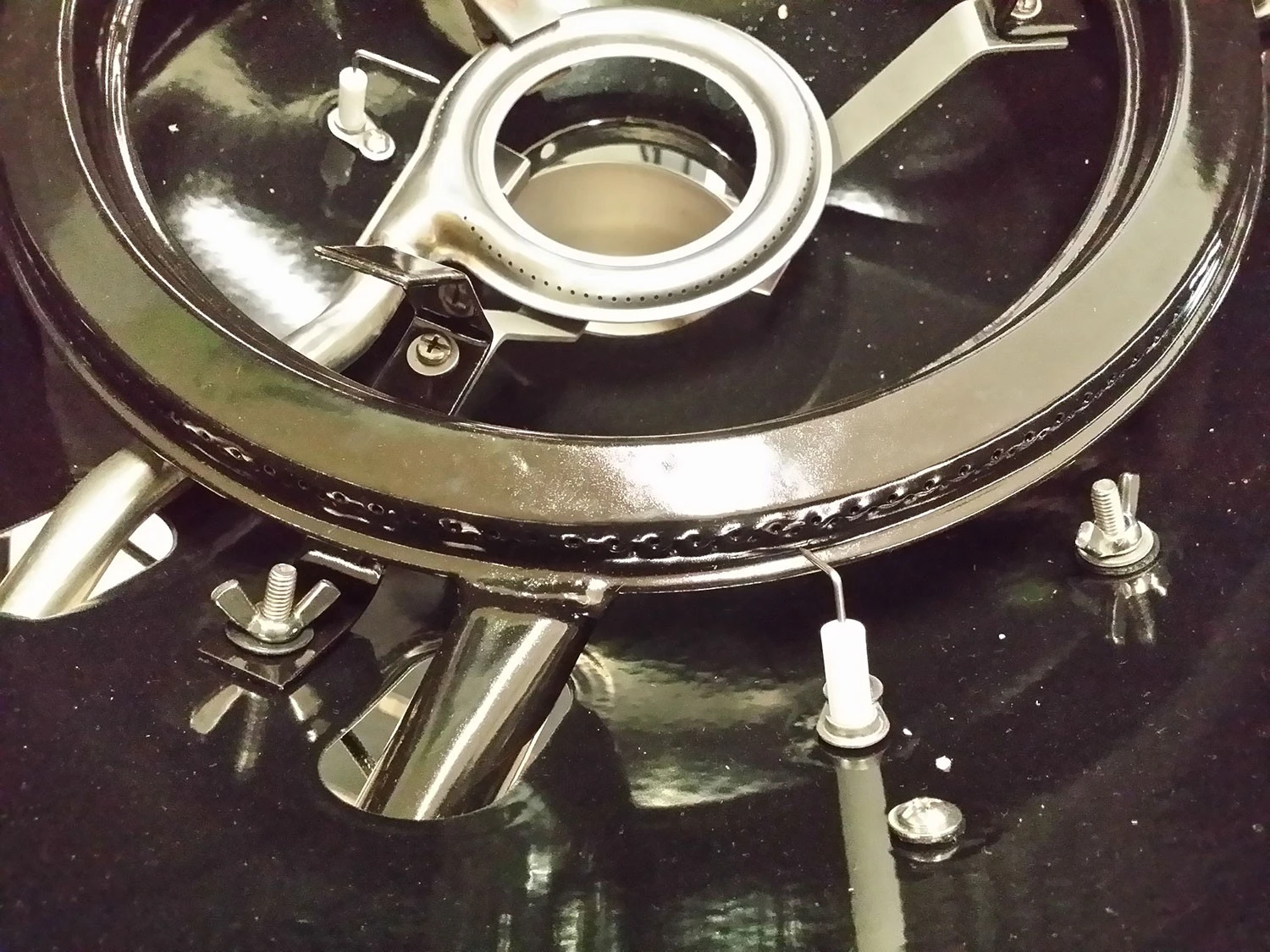 Die porzellanemaillierte Stahlkugel ist ausgestattet mit einem 54cm Grillrost und ruht auf 4 Halterungen am Fahrgestell. Die Kugel und die Füße des Gestells sind höhenverstellbar, damit die Arbeitsfläche je nach Untergrund angepasst werden kann. Das Fahrgestell selbst ist aus pulverbeschichteten Stahl gefertigt und mit 2 gummierten Laufrädern optimiert.