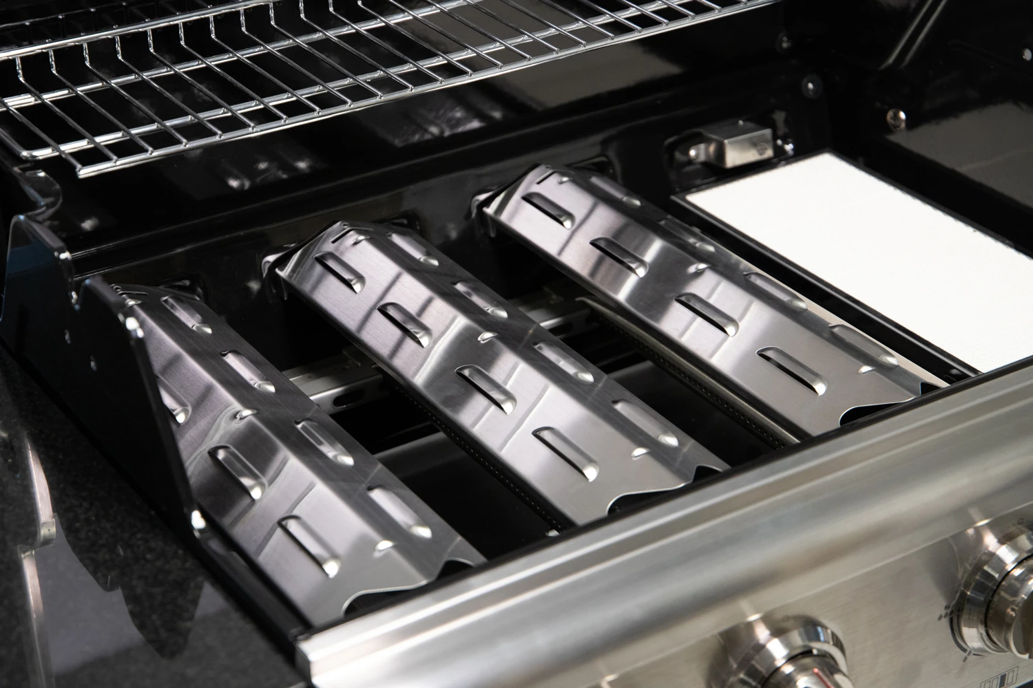Unter der Hauptgrillfläche des 455 G verbergen sich 3 besonders leistungsstarke Edelstahlbrenner mit einer Gesamtleistung von 12,6 kW.