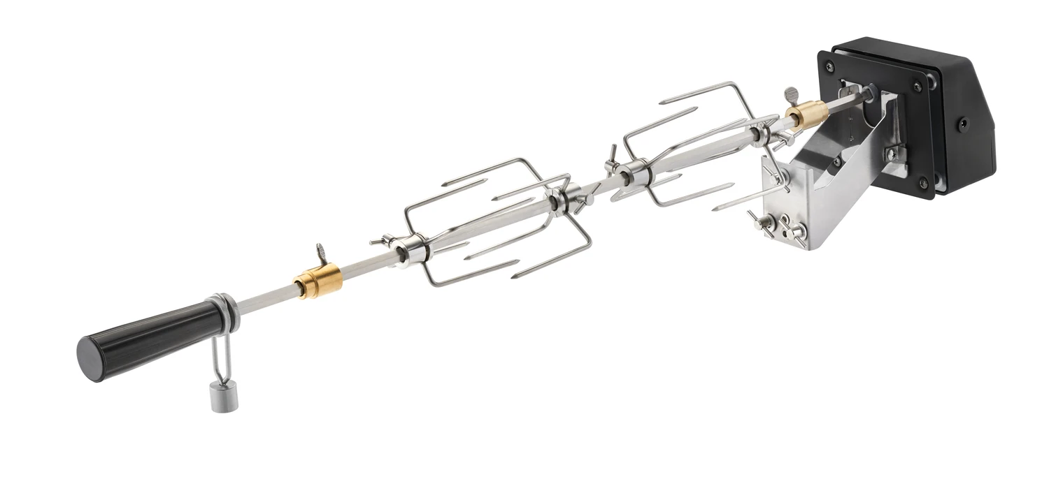 Da der Videro G3-S Vario+ das neue Vario-Grillrostsystem enthält, welches den Einsatz genau mittig vorsieht, bietet der Hersteller leider offiziell keine passende Gusseisen Grillplatte im Austausch eines Grillrosts an. Da erfahrungsgemäß aber viele Kunden eine eckige Grillplatte bevorzugen, um mehr Grillfläche nutzen zu können, legen wir die zweiseitige Rösle Grillplatte aus Gusseisen zum Auflegen direkt auf den Grillrost mit dazu. Weiter liefern wir mit unserem X-DEAL einen Rösle Drehspieß mit Motor und die passende Abdeckhaube direkt mit dazu.