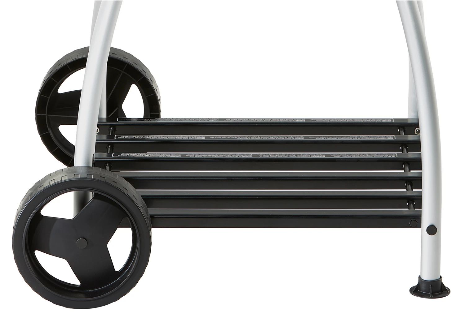 Die Grillkugel sitzt auf einem stabilen Rohrrahmen aus Aluminium und gibt dem Grill einen stabilen Stand. An zwei der Beinen sind Räder montiert, die einen einfachen Transport des Holzkohlegrills versprechen. Zwischen den Beinen des Gestelles ist für die gute Stabilität noch eine Ablage eingebaut. Hier können Sie auch Grillzubehör verstauen.